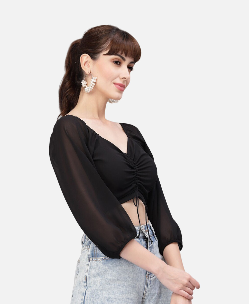 Peach Coloured Ruched Tie-Front New Crop Top